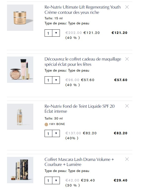 💓 优惠详情雅诗兰黛官网全场>>6 折起!还有价值476€超豪华赠礼!含白金面霜!! 最后机会专区6折! 全场满100€享7折!加购立显! 👉 30ml小棕瓶+15ml智妍晚霜礼盒>>30ml小棕瓶定价都96€了!礼盒仅需70€也很划算! 👉 圣诞限定妆前+高光+口红礼盒 >>超实用的彩妆礼盒!仅需57€! 👉 白金眼霜滋润版15ml >>白金系列罕见打折!眼霜超绝好价6折收! 👉 樱花水>>湿敷超级舒服! 💢 更有最后机会专区 >>自带6折! ⚠️ 部分单品、礼盒、旅行装、最后机会专区不参与,具体以购物车为准! 🎁 送礼详解🌈 品牌消费满140€送价值73€的小棕瓶精华15ml+小棕瓶眼霜5ml+化妆包!  🌈 品牌消费满180€加送价值115€的白金面霜豪华中样!足足15ml!  🌈 品牌消费满220€加送价值288€的白金大礼包!包含白金洁面30ml+白金面霜15ml+白金眼霜5ml!  🌈 购物车界面可自选试用装!满60€送自选2件,满120€送自选3件! 👉 优先选择价值50€的黑钻奢宠紧致面霜7ml!还有价值29€的线雕精华7ml ,价值25€的智妍面霜5ml! ⚠️ 建议小伙伴们一定要选最贵的礼品奥!!送礼选对,价值104€的额外礼品带回家!!  🟩 单品推荐白金眼霜 抗老入门首选,蕴含喜马拉雅极地花+抗老黑科技长基寿科因技SIRT1+3! 能有效提高细胞活性,缓延肤肌衰老,淡化细纹  DW粉底液 让你的底妆焊在脸上,油皮救星!夏天不脱妆神器!持妆很牛逼! 遮瑕力超强、油皮、混油皮必入!服帖、遮瑕力又好,而且持妆超久,不易脱妆,越久越美腻~