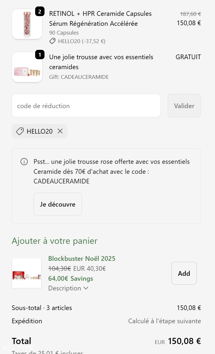 全场自带7折无需折扣码可叠新人8折码:HELLO20还可叠满70€送粉胶7件套码:CADEAUCERAMIDE每单还可选2个试用! 单品推荐