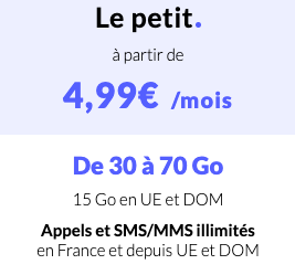 💓 优惠详情Prixtel 手机套餐>>优惠再升级! 👉🏻 法国唯一一家阶段性灵活套餐的运营商,包含不限量通话和短信,每个月按实际使用情况收费,再也不怕流量超额! 👉🏻 使用 SFR 家的网络,覆盖率超级广! 👉🏻 没有长期合约,一年后不恢复原价!可以随时免费更改套餐! 🟩 单品推荐【6.99欧起120G-160G流量 5G信号】 ⭐️ 0-120G流量→6.99欧;120-140G流量→8.99欧;140-160G流量→10.99欧 ⭐️ 5G信号! ⭐️ 法国境内、欧盟和法国海外省可享无限通话及短信 ⭐️ 包含欧盟境内25G流量,随时随地都可以上网~  此外,Prixtel自2020年以来,致力于通过种树、森林再造、现代化农业项目等措施来抵消客户套餐产生的碳排放。这些项目均在法国实施,获得了法国生态转型部的Bas Carbone认证。至今已种植了约45,000棵树,抵消超过5000吨的二氧化碳。 Prixtel还支持24小时在线FAQ和聊天服务哦,客服周一至周五上午9点到下午5点在线! *图片链接素材来源于网络,版权归原作者所有。