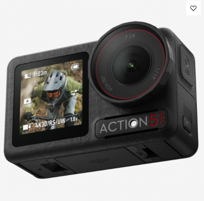 大疆 Osmo Action 5 Pro 标准套装 >> 防水运动相机,1/1.3英寸传感器,4K/120fps视频,被摄体跟踪,稳定防抖,双触控OLED屏,适用于运动与Vlog