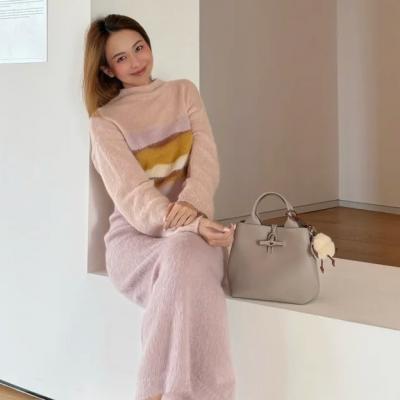 大促专区Longchamp Le Roseau S 手提包米白色发财桶