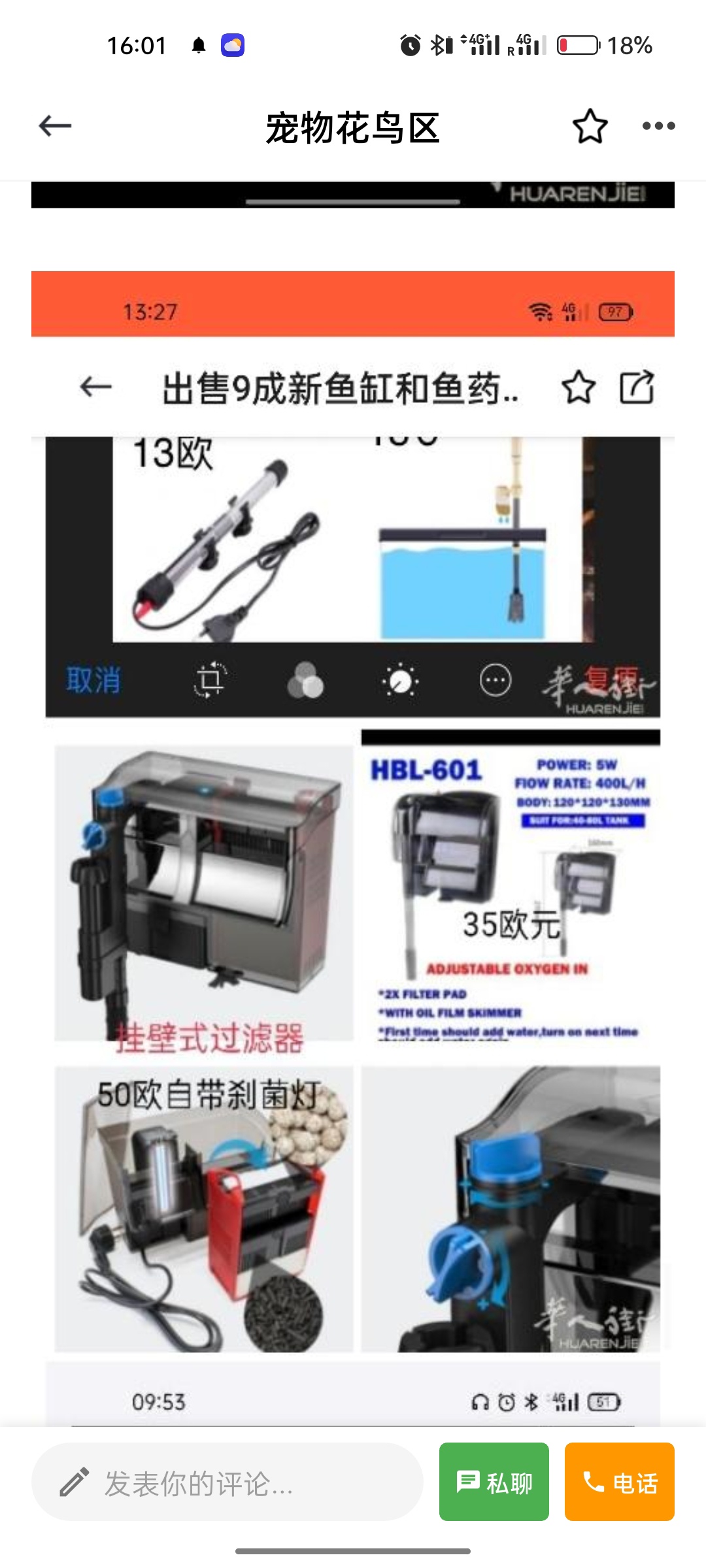 以上的鱼缸加设备加10欧元。