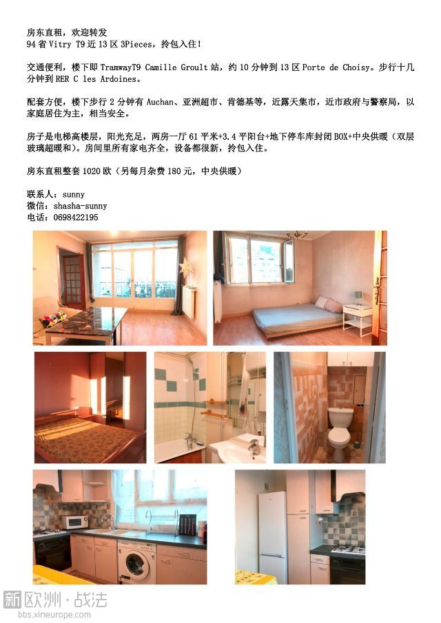 94 省 Vitry T9 近 13 区 3Pieces,拎包入住!