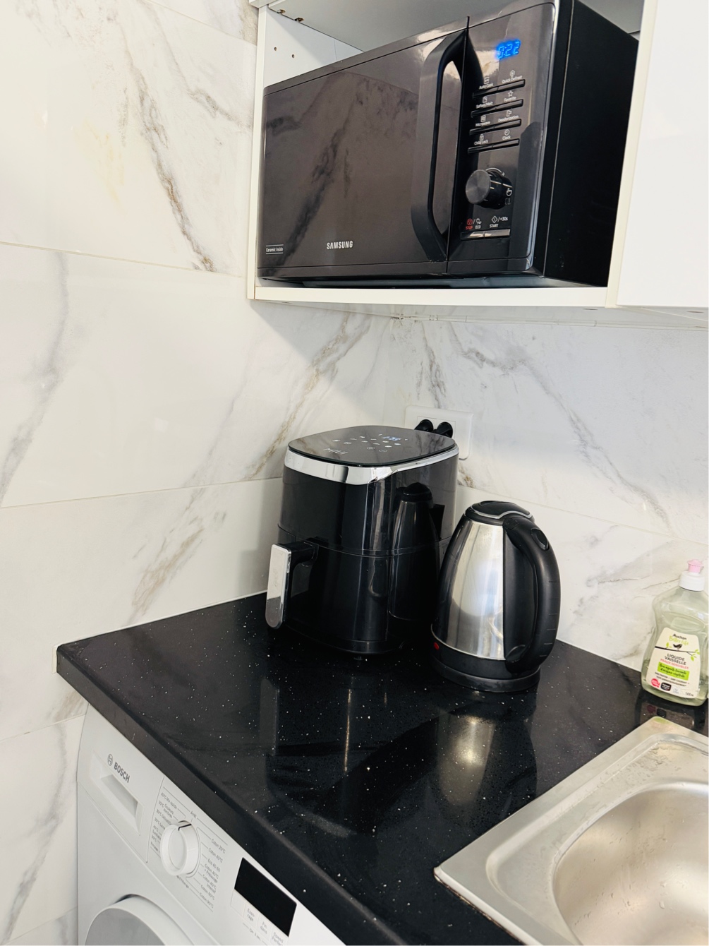 · 厨房区域更宽敞,配备齐全的厨具(电磁炉、微波炉、咖啡机、冰箱等),让您轻松烹饪法式大餐或温馨家常菜。