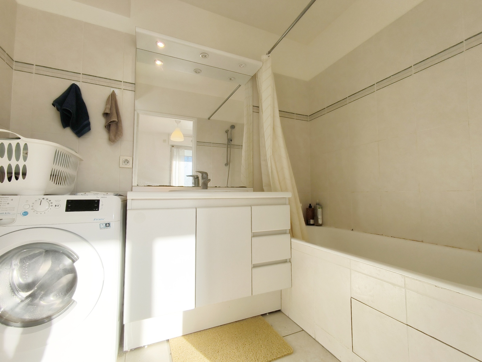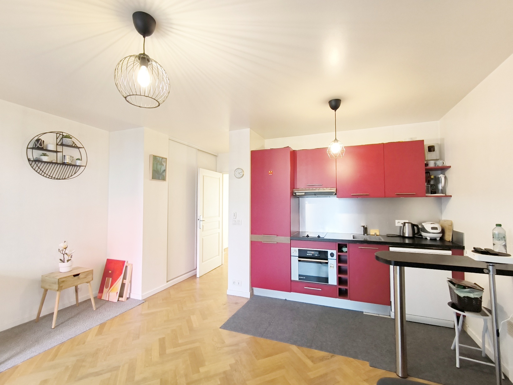 【格局】 位于1楼有电梯,一层3户,42平一房一厅带两个阳台,有一个车位,开放式厨房,卫浴干湿分离,电暖电热水,家具家电配备齐全:大床 、沙发、桌椅、电磁炉 、冰箱、烤箱、洗碗机、洗衣机,附近有Issy 3 Moulins商场,超市Picard 邮局 药店一应俱全。