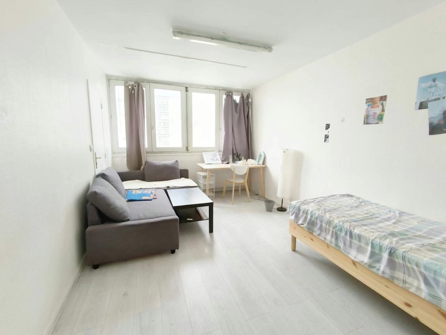 【格局】位于法国26楼,带电梯。45平两个独立房间,大房间15平左右,小房间10平左右,中央供暖供热水,卫浴干湿分离。采光好。厨房设备齐全,配洗衣机冰箱。有沙发,书桌,床。带cave。大楼有楼管。