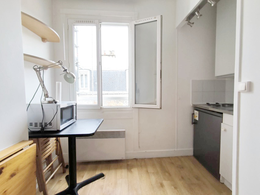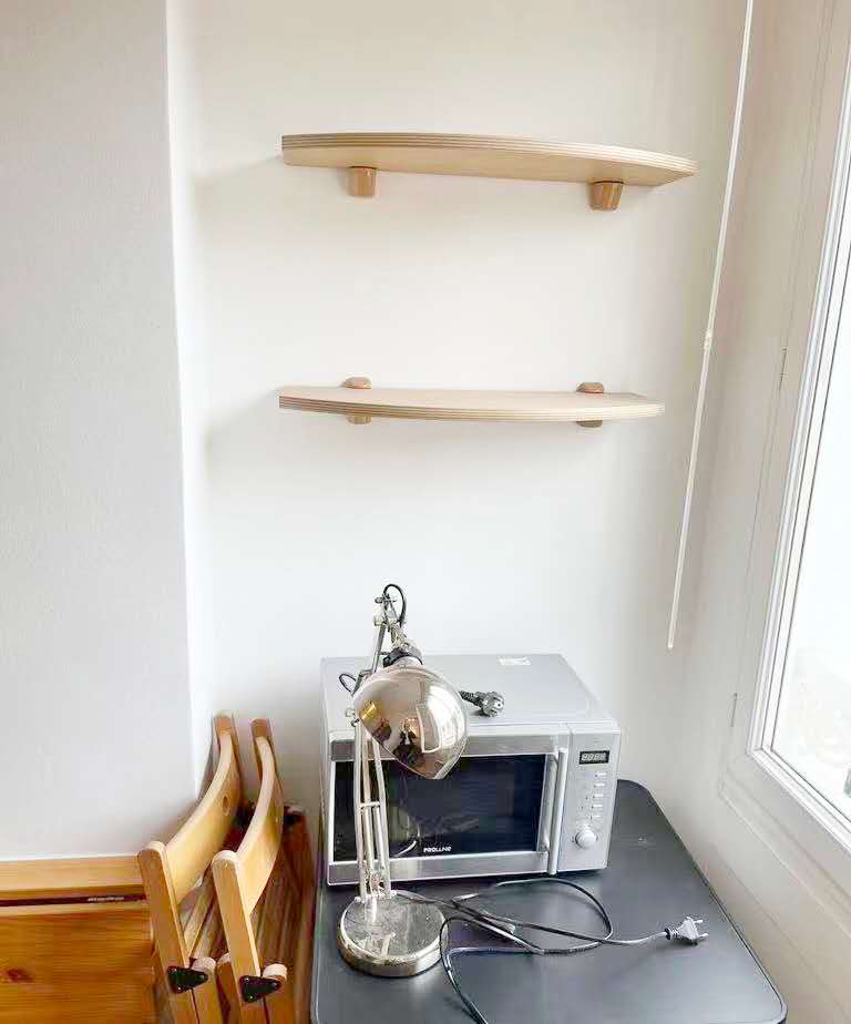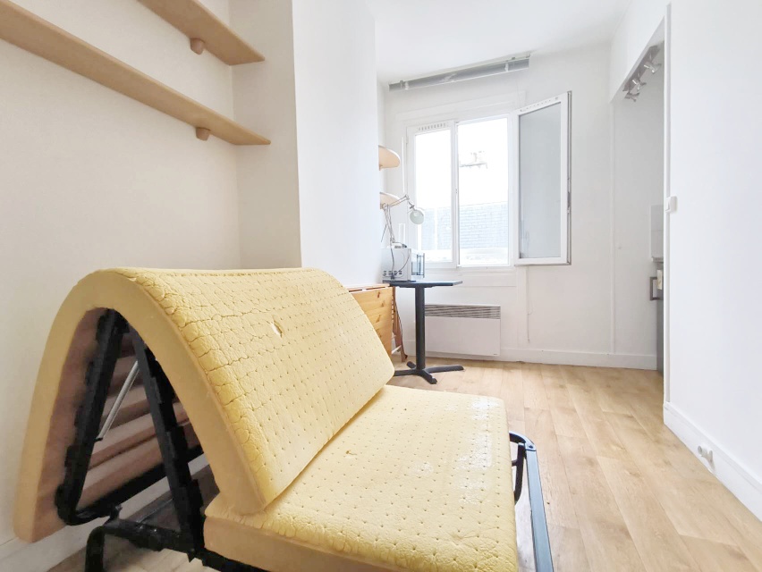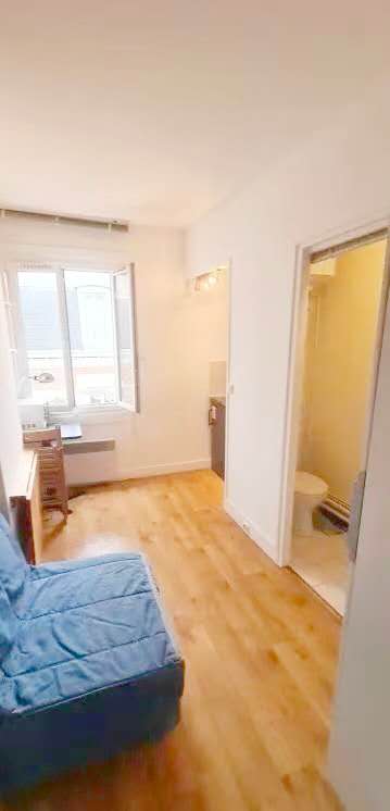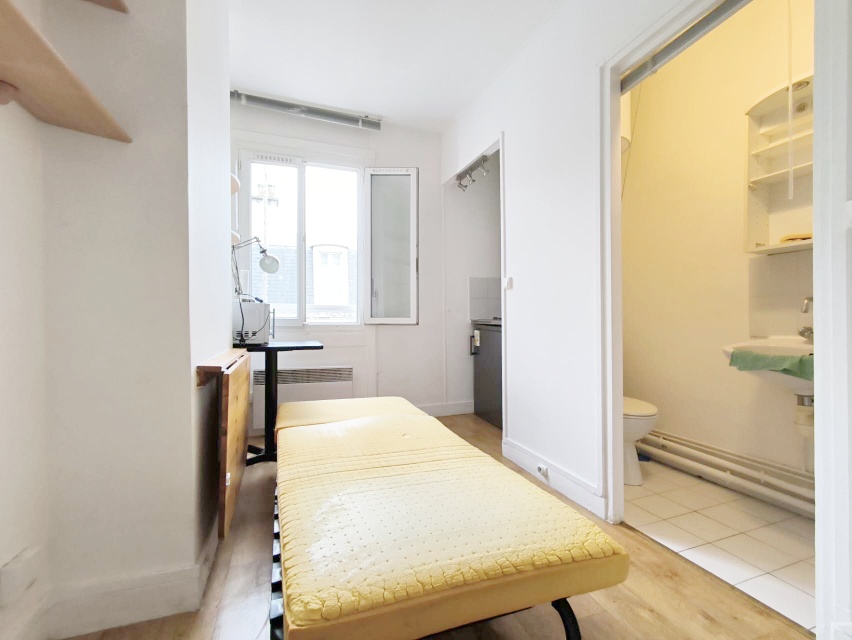 【格局】位于法国5楼无电梯。11平Studio,电暖电热水,独立卫浴,电马桶。双层玻璃,朝院子安静,DPE 是E ,家具齐全沙发单人床、桌椅、衣柜、冰箱、微波炉。内院可以停自行车。