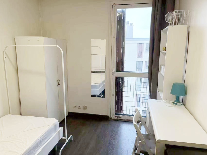 【格局】法国7楼带电梯,整套房56平,出租房间12平,采光好,落地窗,家具齐全。厨房,浴室及卫生间共用;配有洗衣机、冰箱、微波炉、烤箱、电磁炉等。中央供暖热水。室友是一对情侣和一个男生。附近就有超市、银行、邮局,典型的法国人生活小区,非常安全。