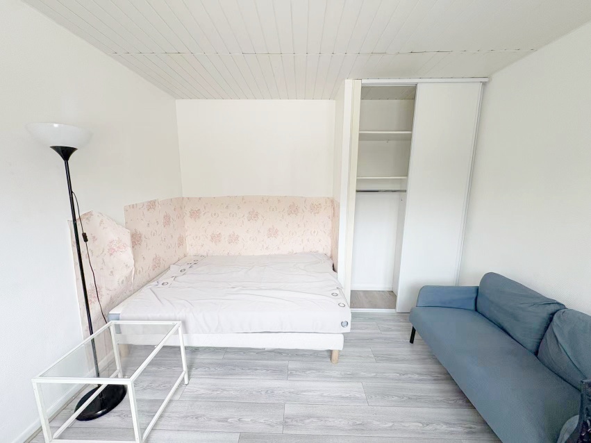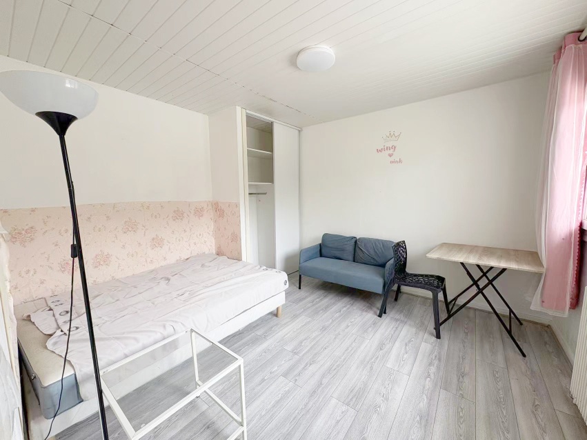 【格局】位于法国1楼,22平studio,中央供暖电热水,家具齐全 双人床、沙发、桌椅、衣柜、冰箱、洗衣机齐全。