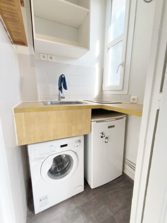 【格局】位于法国2楼,带电梯。19平studio,中央供暖,电热水,房间朝东,双层玻璃大窗户,采光好又隔音。独立浴室和带窗户的独立厨房,厨房设施齐全,有洗衣机、炉灶和冰箱。