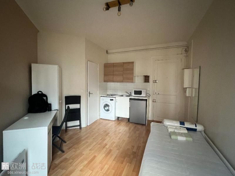 【格局】法国1楼带电梯,有门卫。电暖,25平大studio 带阳台,开放式厨房。有一个cave,精装修,配全新家具出租,有床、桌椅、冰箱、洗衣机。