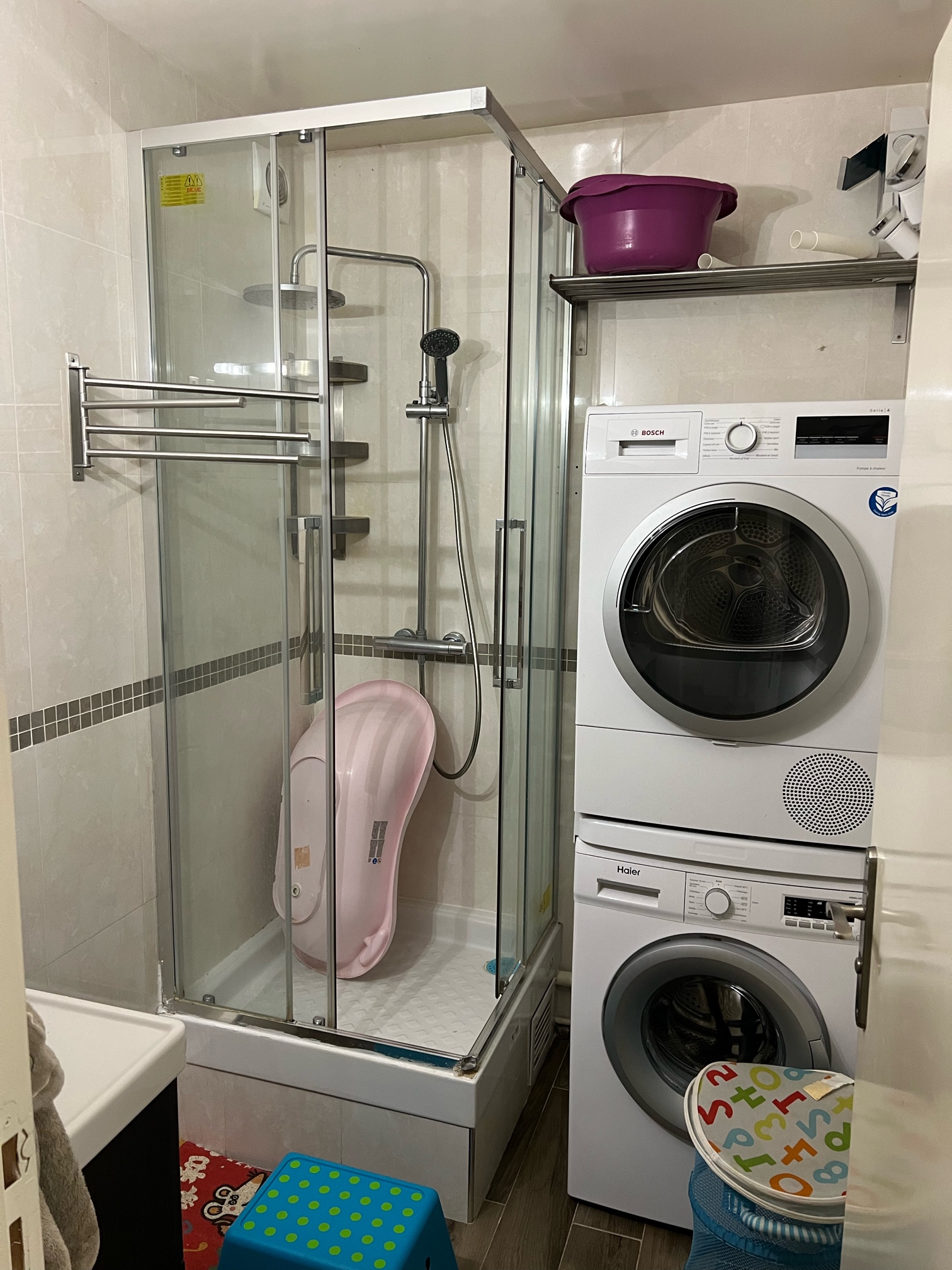 两个卧室分别配备一把钥匙。一个主卧20平 带阳台 一个次卧12平,配有一张双人床,小房间有一个 小床 衣柜桌椅基本家具 都齐 。厨房 带有洗碗机和双开门冰箱 浴室有洗衣机和烘干机 早上至下午一两点阳光很好。25平米客厅,美式厨房,设备齐全 (电磁炉台,微波炉,冰箱等)。客厅活动空间很大还有一个小阳台,东南朝向。