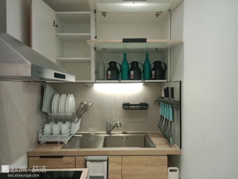 廚房配置有洗衣機、熱水壺、微波爐,以及三爐頭一體式電磁爐、廚具、餐具、刀具、和空氣炸鍋。
