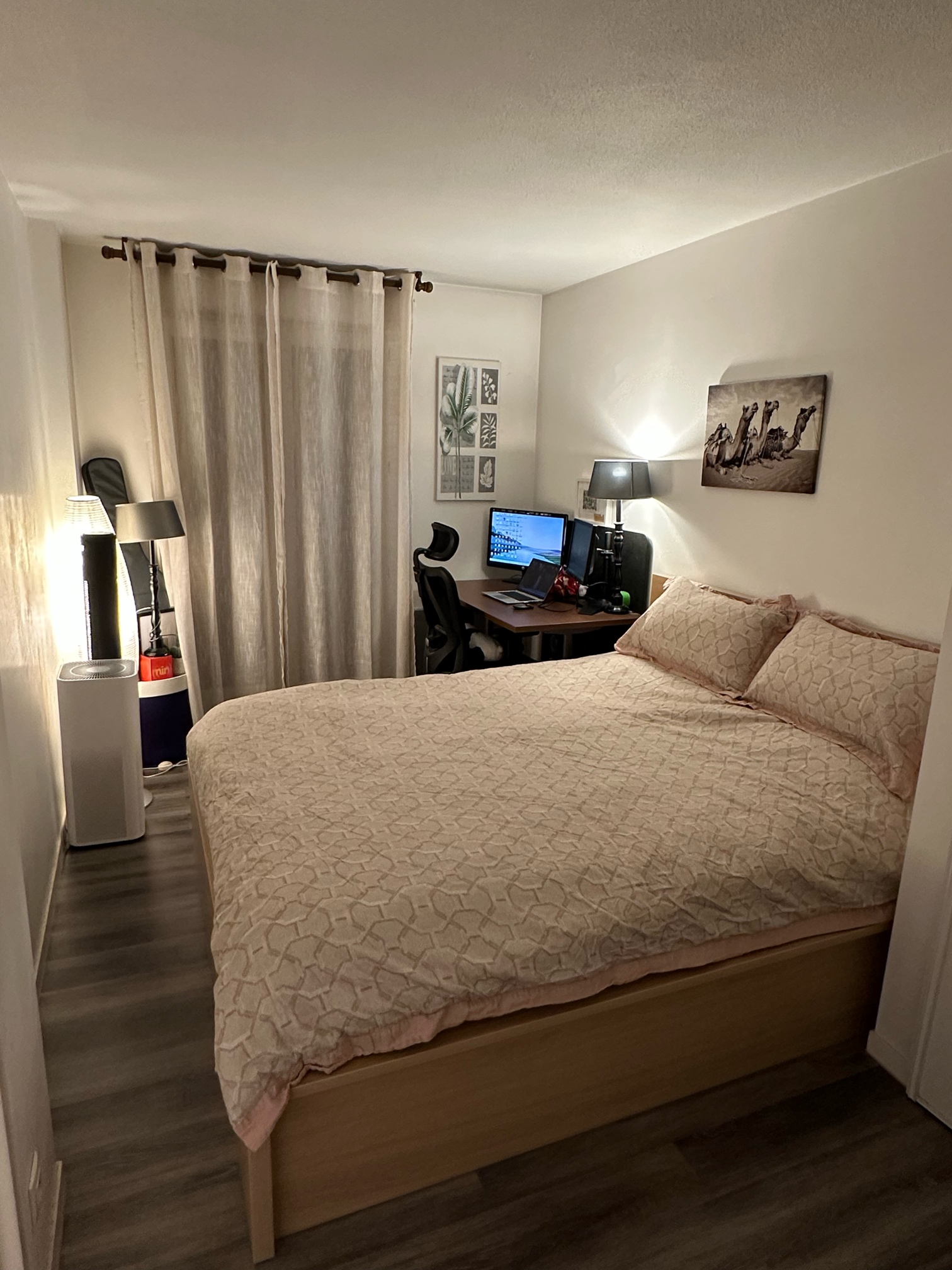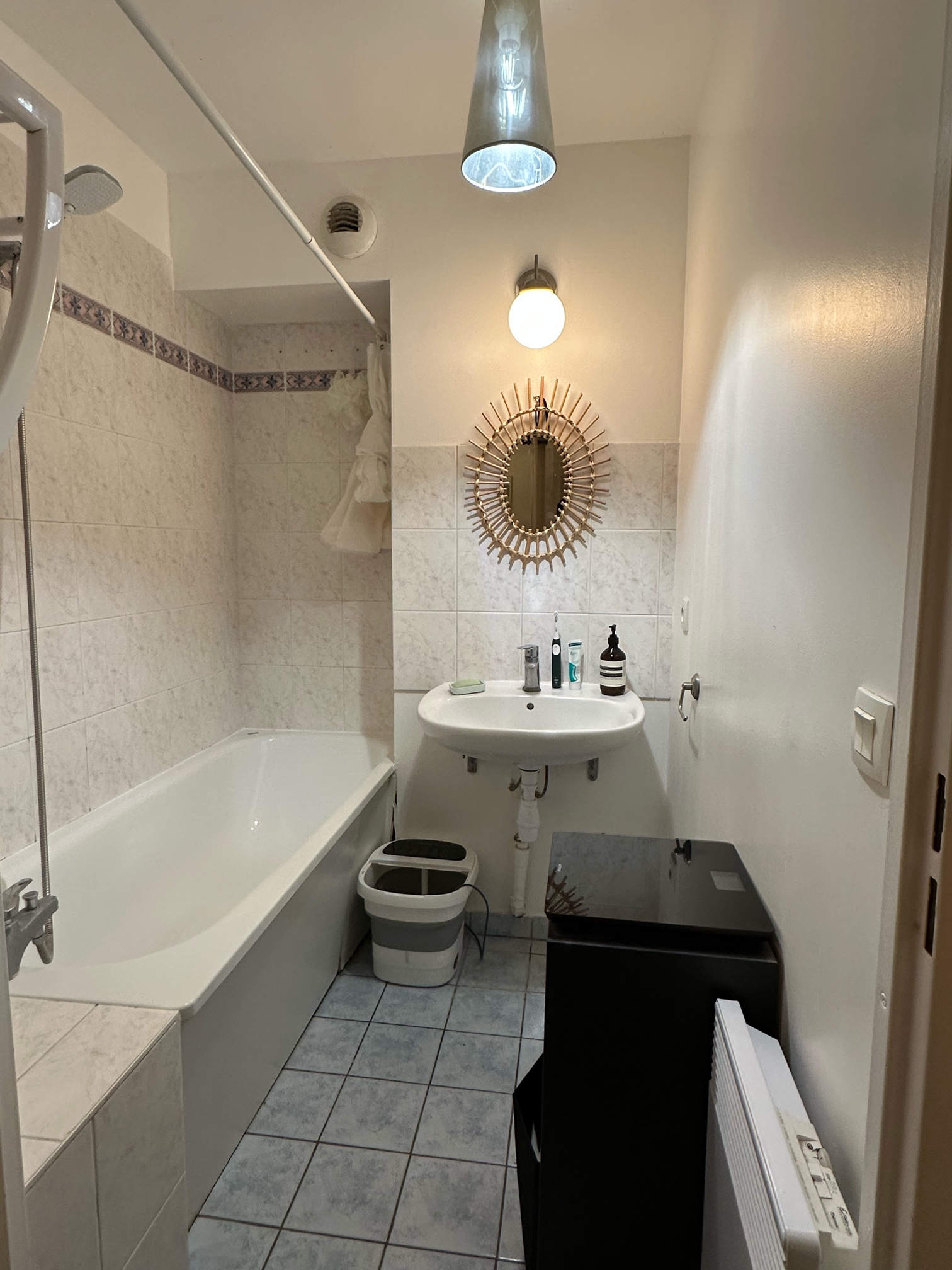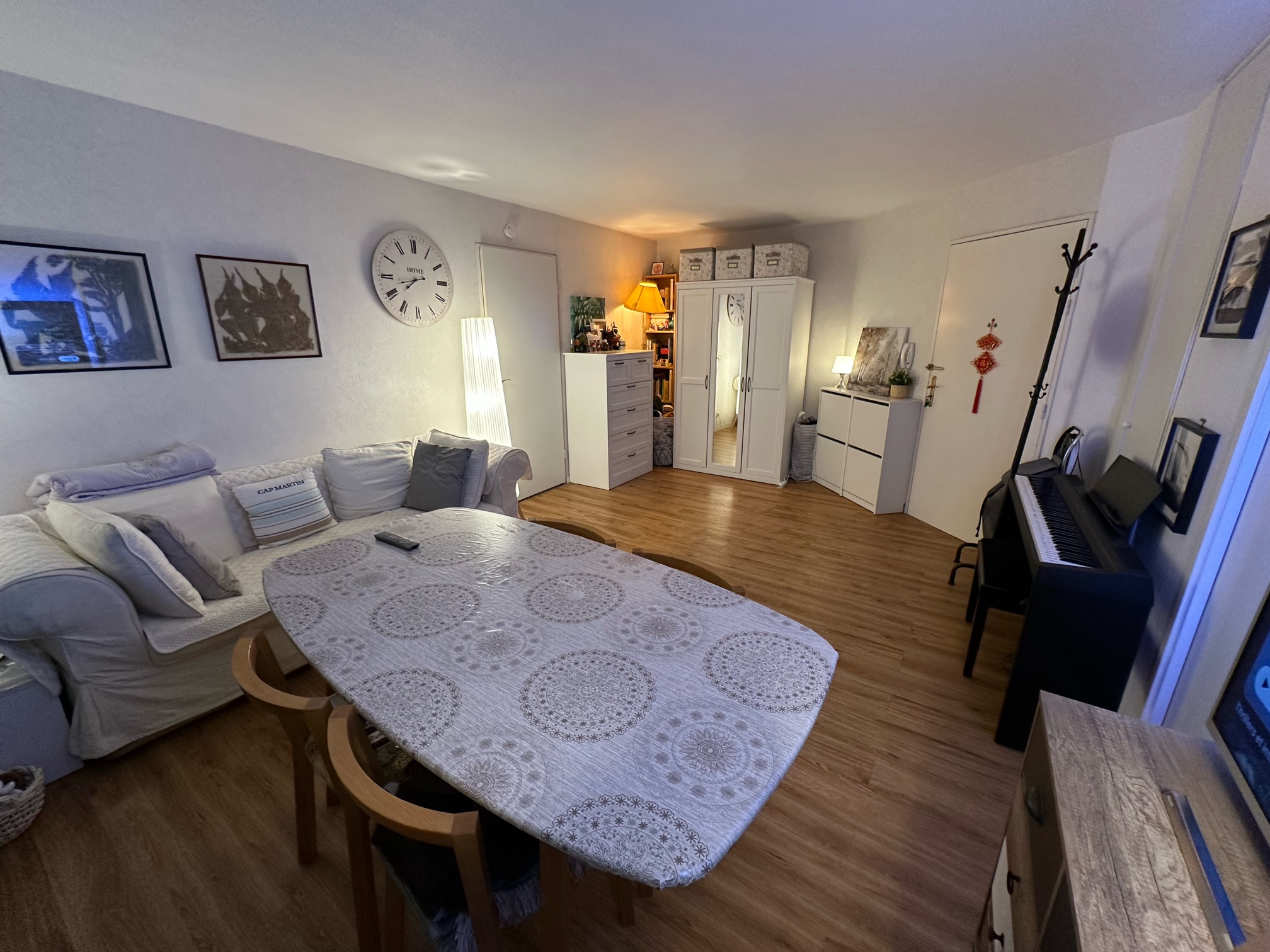 43平一室一厅,在RDC,有电梯,家具齐全,地下有一个专属停车位。有一个14平米的阳台,阳台正对花园,sans vis-à-vis。公寓完美适合年轻couple!