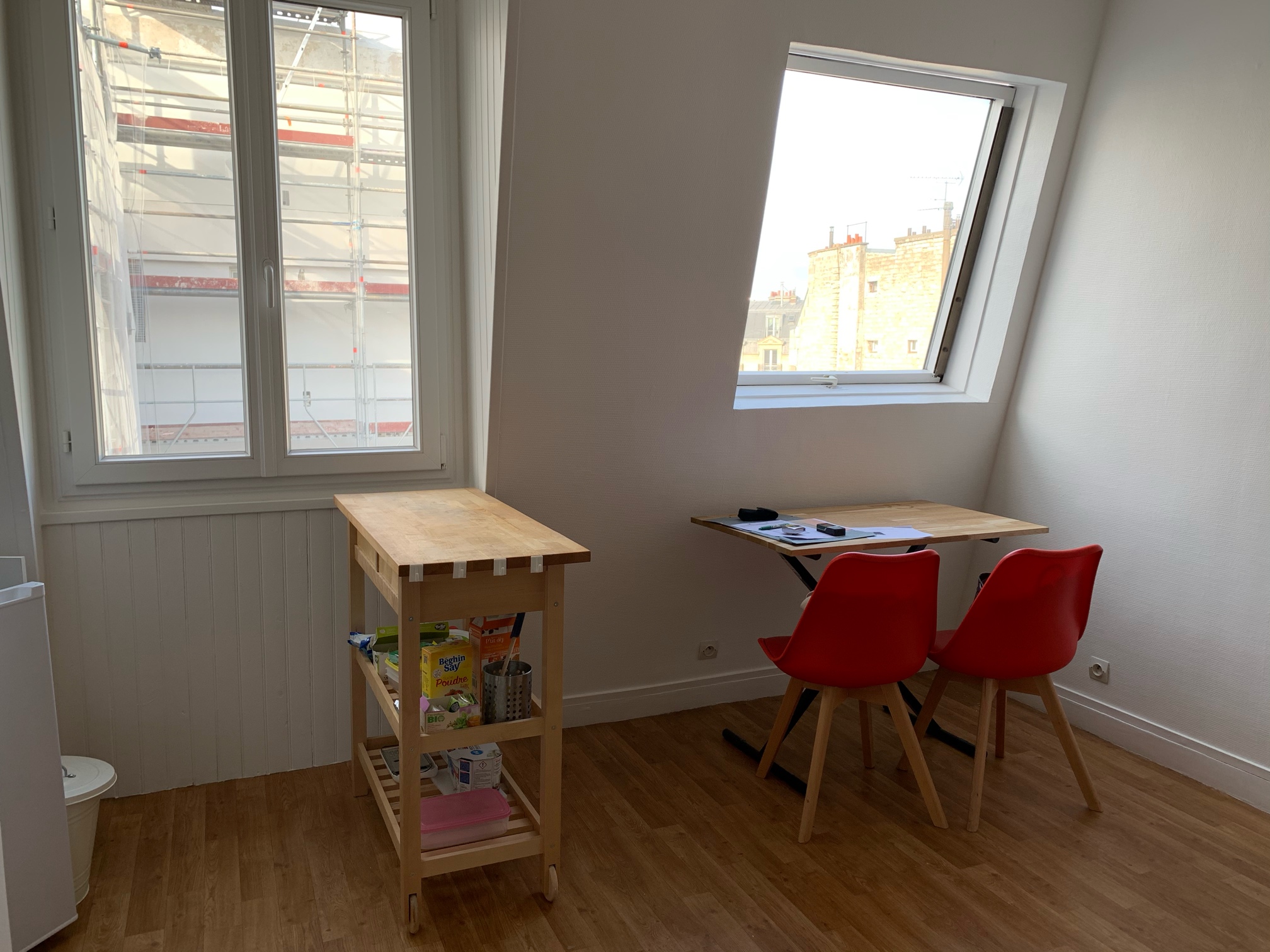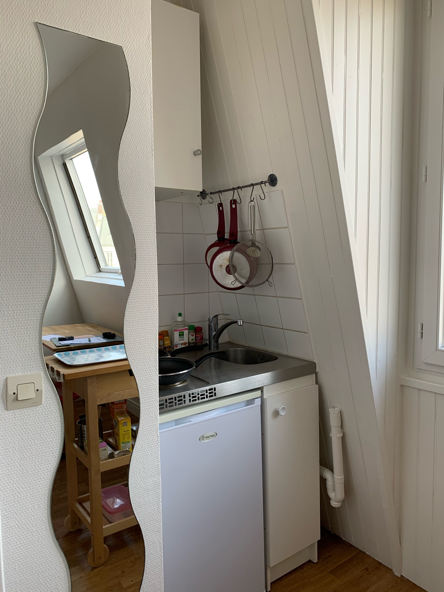 【房间】公寓位于7楼有电梯有两扇窗户,阳光充足,有一个coin cuisine,有独立的淋浴室和厕所,有洗衣烘干机,微波炉,双人的沙发床,房间设施齐全。公寓有gardien和一个可以停放自行车的地方。