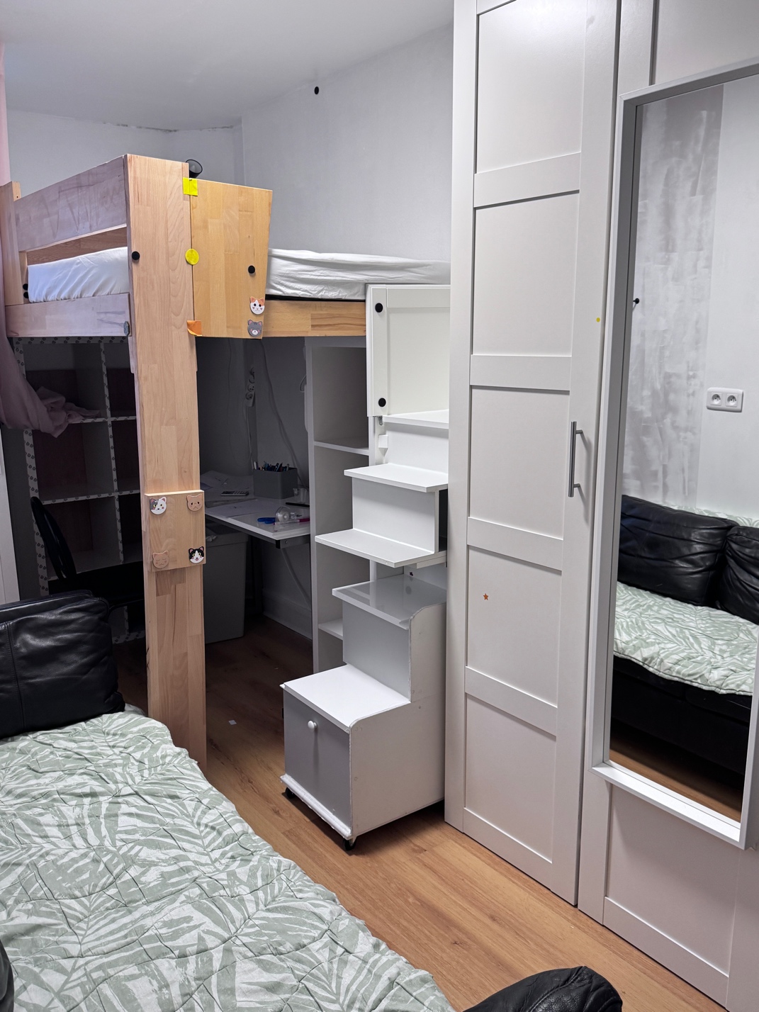 里尔分租房里尔2号线fort de mons 地铁口分租房新装修大床 和沙发️都是新买的 备有衣柜壁橱 书架 书桌 鞋架 书灯设备有暖气 洗衣机 冰箱 微波炉 空气炸锅 橱柜 碗柜 等等交通方便下楼就是地铁 周围有超市学校 游泳池 药店 邮局 公园跑步运动健身等器具 离市中心商业区火车站五站地大约10分钟坐地铁 近高校:skema地铁10分钟 临近Villeneuve -d’Ascp,里尔大学 pont de bois公交车10分钟,里尔大学 cite scientifique 20分钟,Edhec30分钟,喜欢爱清洁 无宠物学生 工作等人士入住 提包进驻(学生可以申请房补)短租 长租 都可以