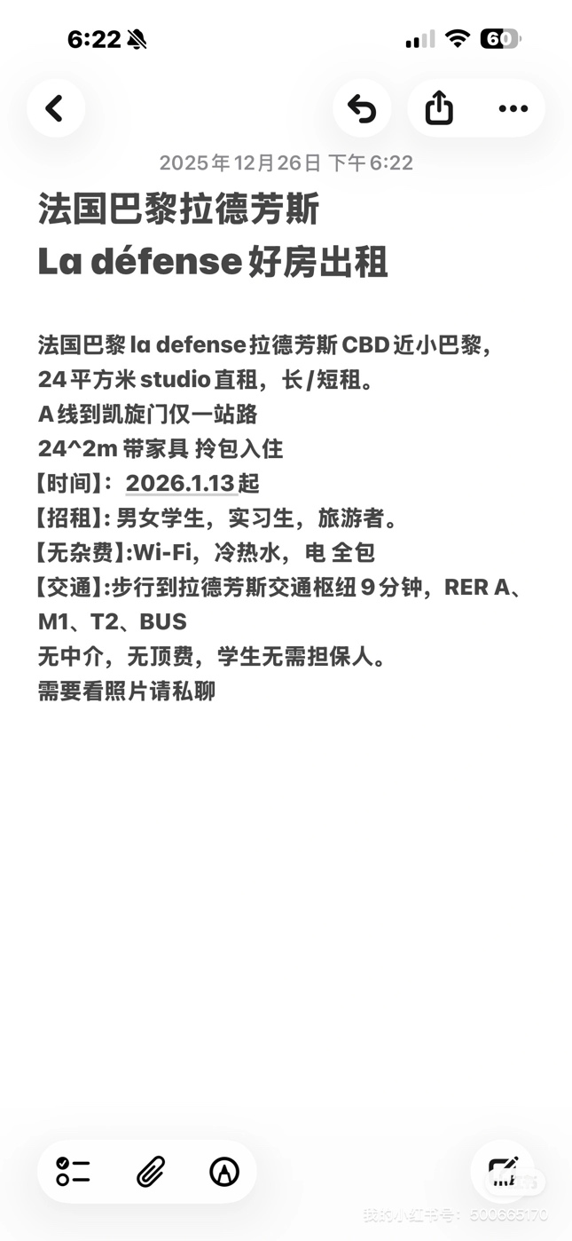 法国巴黎la defense拉德芳斯CBD近小巴黎,24平方米studio(带阳台)直租,长/短租。