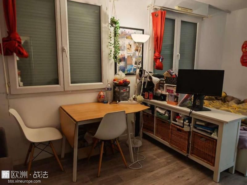 3. 房子布局及家具:Entree:带有大壁橱。Séjour:床 (单人床,可拉伸至双人床)、电视柜、餐桌椅、书柜、餐边柜等家具齐全,可拎包入住。