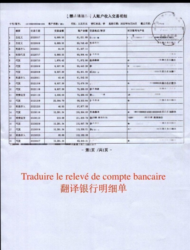 服务范围:中国和法国驾驶执照:如果您没有经过认证的驾驶执照翻译件,在国外驾驶可能会是一个挑战。 我们为您提供经认证的中国驾驶执照翻译成法语的翻译件,或者反之亦然,让您的工作变得更加轻松。 此翻译将使您能够自信地旅行并在目的地国家/地区合法驾驶。公证文件翻译及认证公证契约在许多法律交易中非常重要。 我们了解这些文件的重要性,并准备帮助您翻译和认证它们。 无论是房地产交易、商业合同还是其他法律需求,我们的宣誓翻译团队都会随时为您提供支持。结婚、离婚、捐赠、亲子关系、继承对于您人生中与结婚、离婚、捐赠、亲子关系或继承相关的所有阶段,我们都在您身边翻译和认证所有必要的文件。 您可以依靠我们的专业知识为您提供符合法律要求的准确翻译。出生证明翻译认证如果您需要出生证明的认证翻译,我们随时为您服务。 我们的团队将确保您的出生证明得到准确翻译和认证,以便您在各种法律情况下使用它。房地产资产跨境转让:远程公证跨境房地产交易可能很复杂,但我们的翻译公司可以简化流程。 我们提供必要的翻译和合法化服务,以促进不同国家之间的房地产转让。专门从业证书和通知的翻译和认证: 我们的团队会为这些重要文件提供准确且经过认证的翻译。 我们随时准备翻译各种行政文件,例如专业许可证、營業執照 摘录以及许多其他文件,以满足您的特定需求。在我们的翻译社,质量是我们的首要任务。 我们所有的翻译均经过认证并符合法律要求。 您可以相信我们的专业知识和承诺,让您满意。 请立即联系我们获取个性化报价,并了解我们如何帮助您满足您的所有笔译和口译需求。 您的信任是我们最大的回报,我们将竭诚为您服务。网站: https://francochinois.net/Youtube: services comprennent :Établissement de soutien juridique, droit des affaires, fond de commerce, accords et contrats, paiement de dettes, solutions de conflits, divorce, pour tous problèmes d’impayés, dettes, paiements, contrats, réponses, baux, droit de la famille.Traduction et interprétation : Que vous ayez des documents officiels, juridiques, médicaux, techniques ou commerciaux à traduire, nous avons lexpertise nécessaire pour vous fournir des traductions précises et de haute qualité.Légalisation en France et en Chine : Nous sommes spécialisés dans la prestation de services de légalisation de documents, que ce soit en France ou en Chine. Nous nous occupons de toutes les démarches administratives pour que vos documents soient reconnus légalement.Permis de conduire chinois et français : Obtenez une traduction certifiée de votre permis de conduire chinois en français, ou vice versa, pour faciliter vos déplacements à létranger.Actes notariés : Nous pouvons vous aider à traduire et à certifier des actes notariés pour toutes vos transactions légales.Actes de mariage, contrat de mariage, PACS : Pour toutes les formalités liées à votre mariage, que ce soit pour un acte de mariage, un contrat de mariage ou un pacte civil de solidarité (PACS), nous sommes là pour vous assister.Jugement de divorce, donation, acte de filiation, actes de succession : Nous traduisons et certifions tous les documents nécessaires pour les procédures de divorce, de donation, de filiation et de succession.Acte de naissance : Si vous avez besoin dune traduction certifiée de votre acte de naissance, comptez sur nous pour vous fournir un service rapide et précis.Transmission de biens immobiliers : Nos services de traduction et de légalisation sont essentiels pour les transactions immobilières transfrontalières.Attestations et notifications : Nous pouvons traduire et certifier des attestations et des notifications pour toutes vos besoins légaux.Permis, KBIS, et bien plus encore : Quil sagisse de traduire des permis professionnels, des extraits de KBIS ou dautres documents administratifs, nous sommes là pour vous servir.Chez notre cabinet de traduction, nous nous engageons à vous offrir des traductions de qualité supérieure, certifiées et conformes aux exigences légales. Faites-nous confiance pour vos besoins en traduction et en interprétation, et contactez-nous dès aujourdhui pour obtenir un devis personnalisé. Votre satisfaction est notre priorité absolue 。