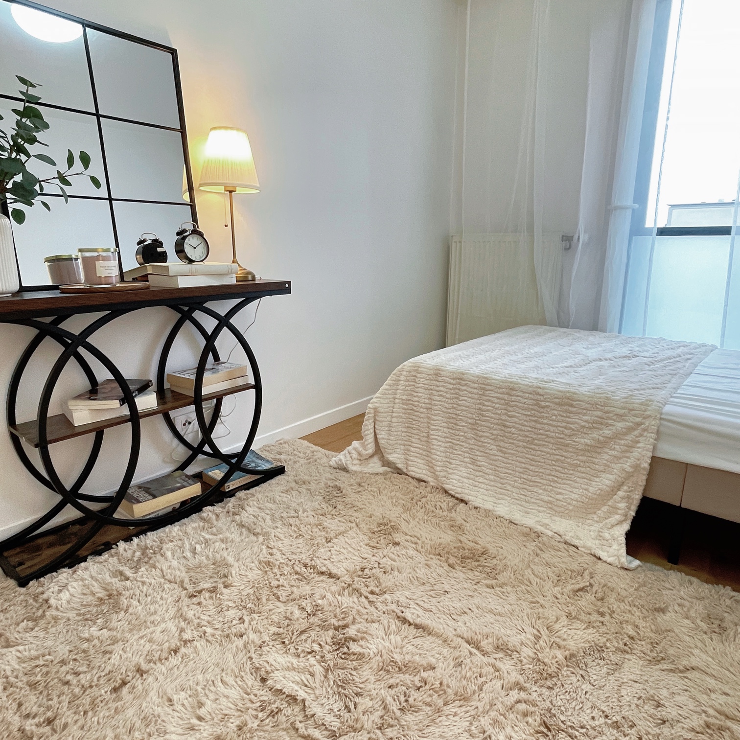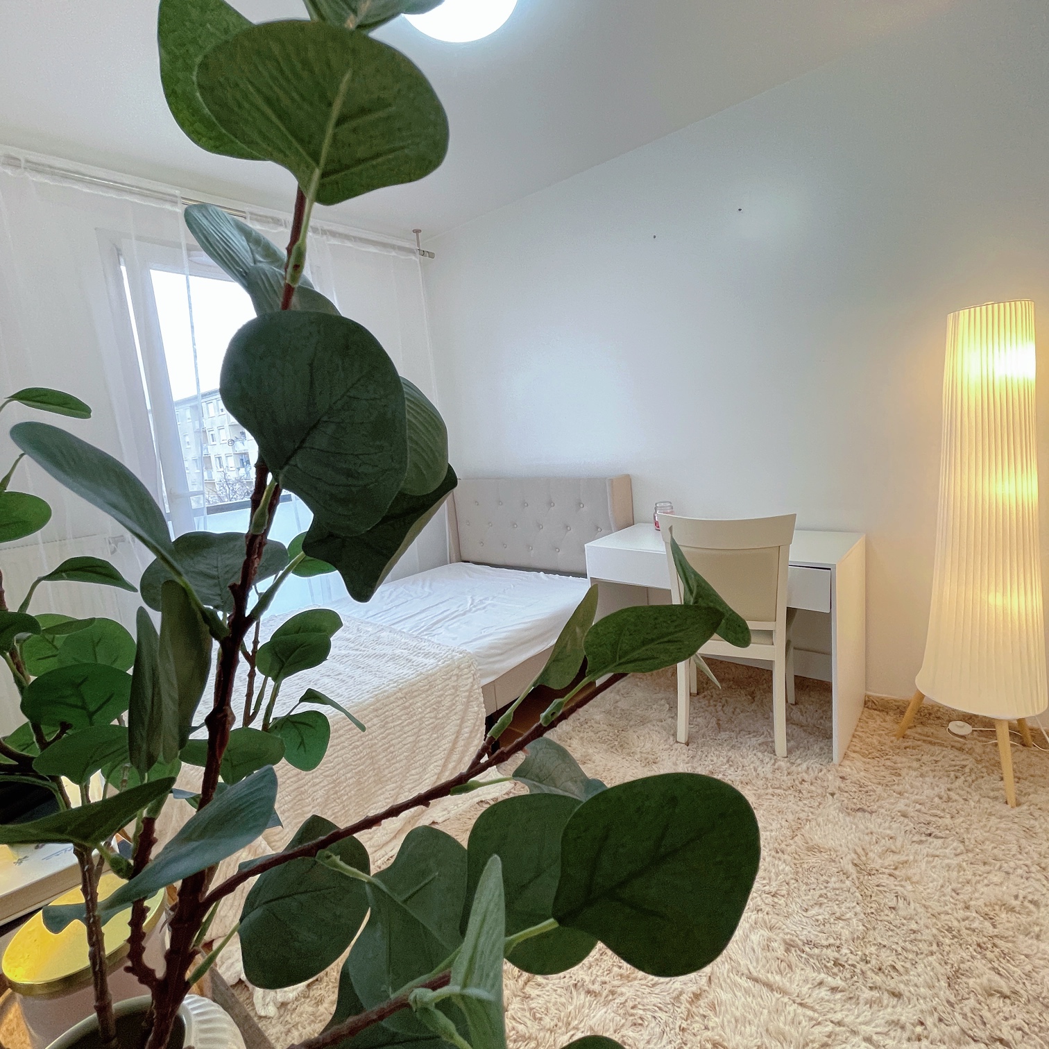 ✅:总面积86平方米,这是其中一间,单间出租,空间利用率高,阳光充足。视野开阔无遮挡,安静不吵闹。家具家电齐全(冰箱、微波炉,洗衣机、烤箱、双人床、衣柜等),双浴室,自己住舒服,也可以和闺蜜做邻居。储物空间充足无需额外添置,省心入住。