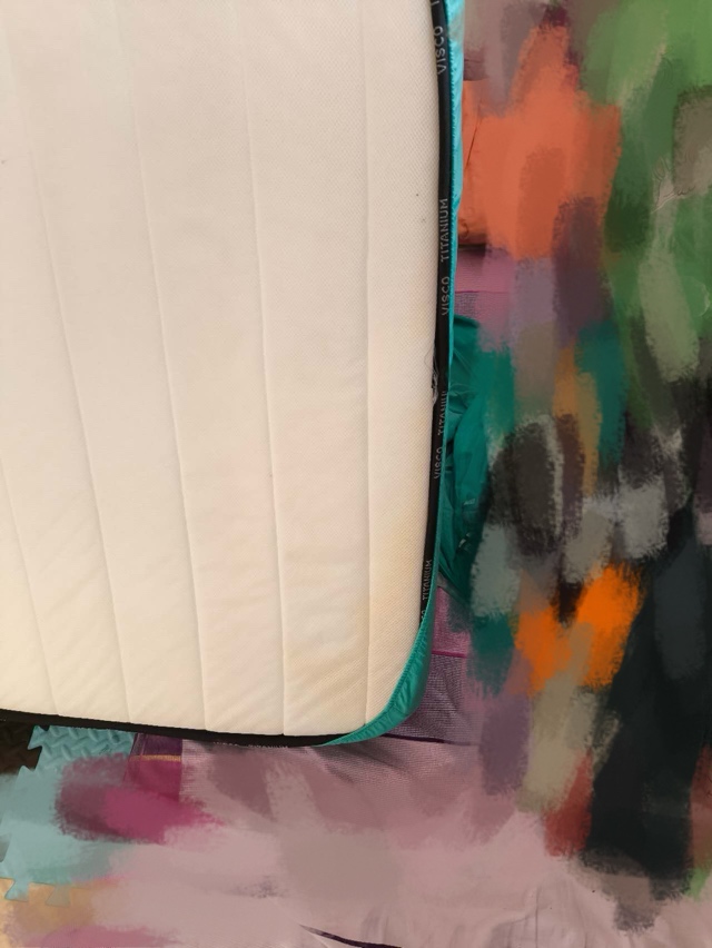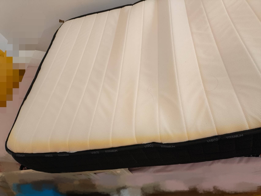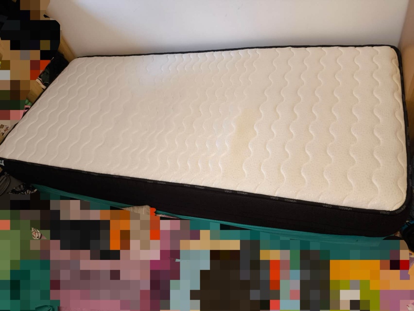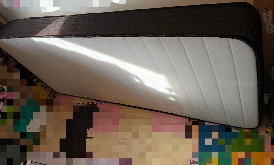 闲置在客房靠墙 所以一边儿有点儿黄(如图)。现在因为改儿童房所以低价出售了。原价300多,侧卧符合7zone 人体工程曲线