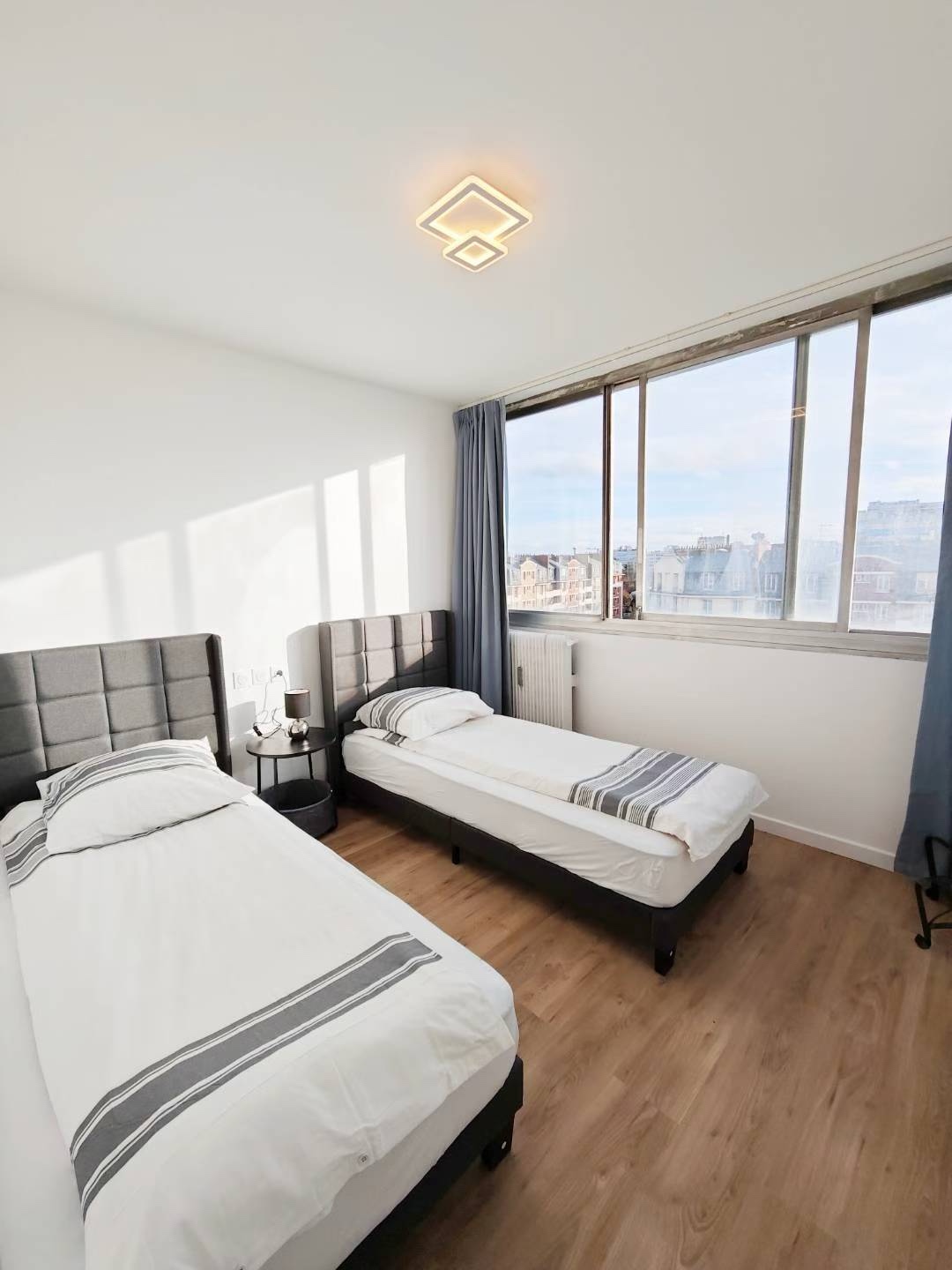 巴黎13区新屋招短租/日租/出租全新房源诚意推出~这里紧邻地铁7号线,出行超级便捷,不管是去市区各处办事、游玩,还是日常通勤,都十分顺畅。而且身处华人区,满是浓郁的中国氛围,出门就能感受到熟悉的文化气息,更有超多地道中国美食,满足你的中国胃,轻松找到家乡味道。房屋布局实用,含三个房间、一个小客厅。其中一间配备双人床,一间有两张单人床(如图,房间整洁明亮,床铺舒适),还有一间小房间放有一张单人床。小客厅温馨,适合休闲放松。如此便利又充满“中国味”的居住选择。