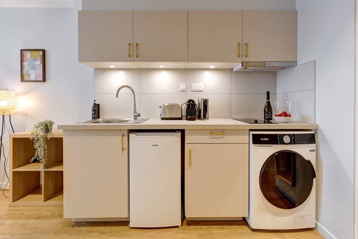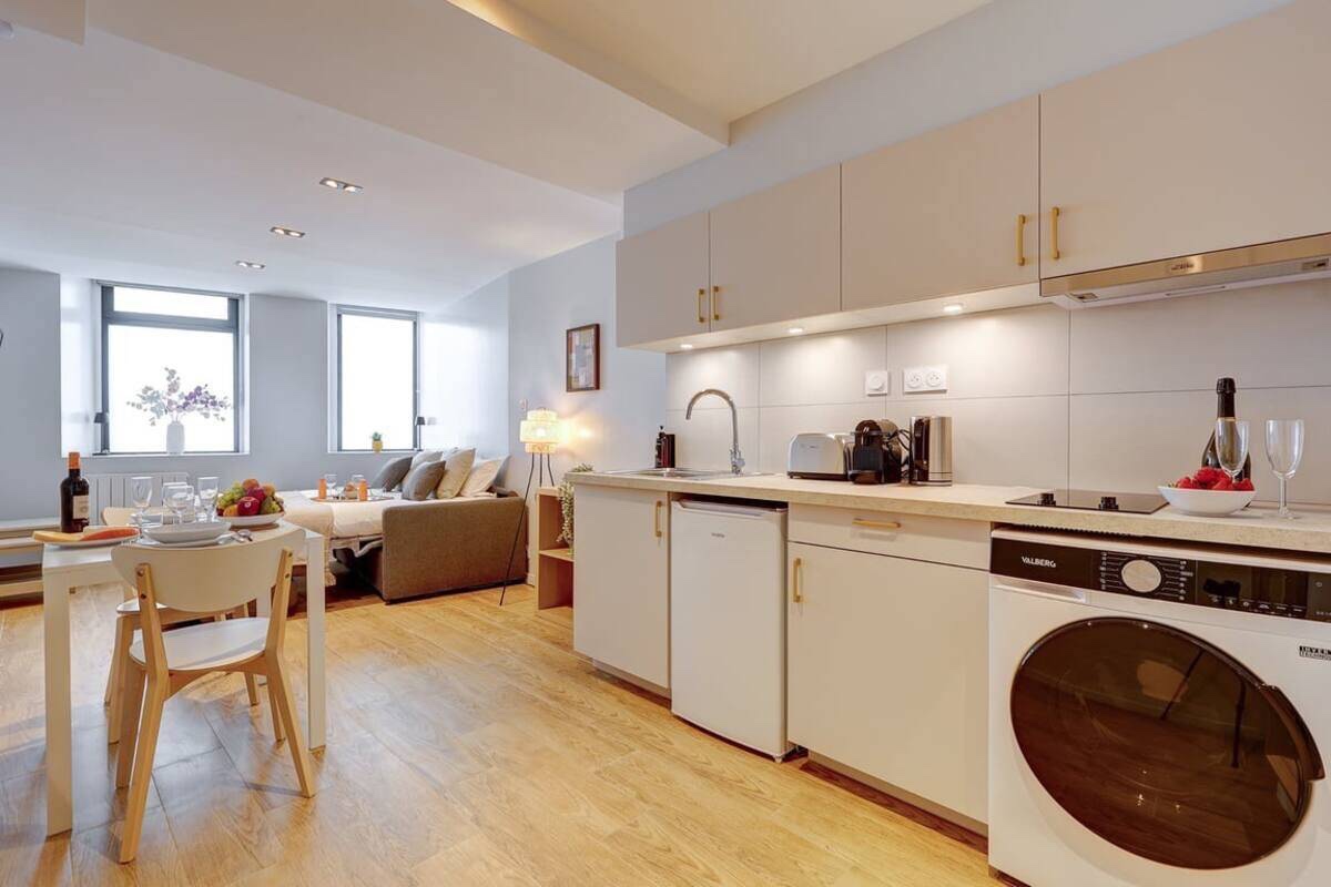 • 配套:极致 Full Équipé!电磁炉、全套厨具餐具、咖啡机、烤面包机、洗衣机一应俱全。