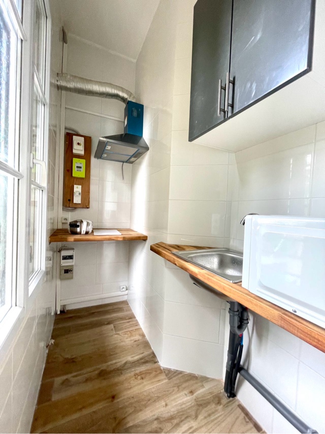 处94省Vitry-sur Seine 别墅区内。全新装修,独立厨房,独立卫生间,独立房间,家具齐全,有电冰箱,微波炉。床、衣物柜:桌子、书架。