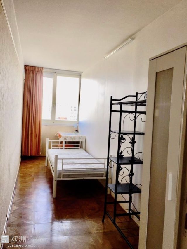 一间13平方米的房间,房租600欧/月,即一张单人床、书桌椅子衣柜等,家具配备齐全,包含杂费,网费和水费,电费分摊,正规住宿合同,可申请房补。
