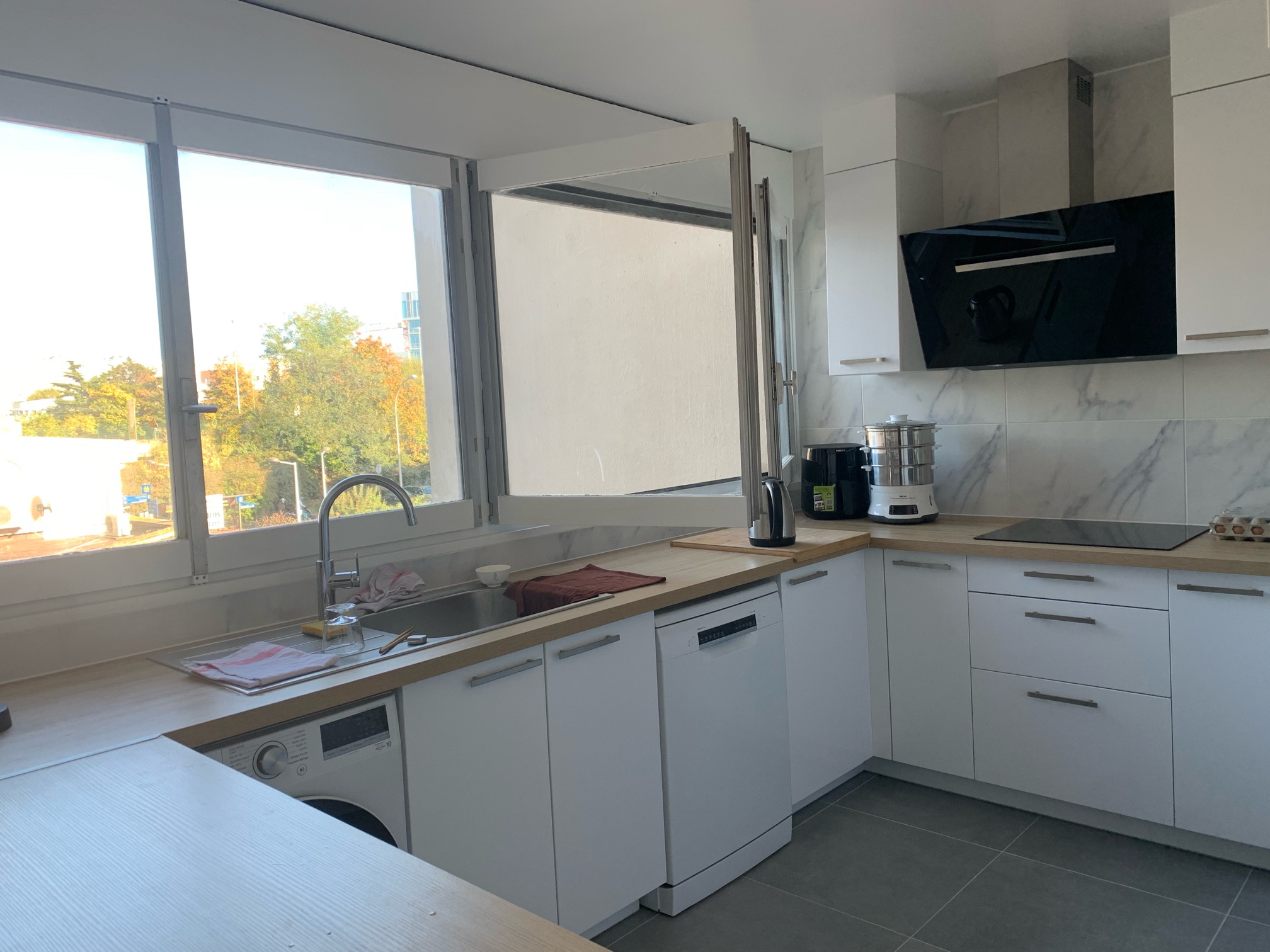 22年新装修,近90平三室一厅,房东自住房,家具齐全且质量特别好,特别干净整洁,超大厨房,冰箱、微波炉、烤箱、两台洗衣机,干湿分离卫浴。