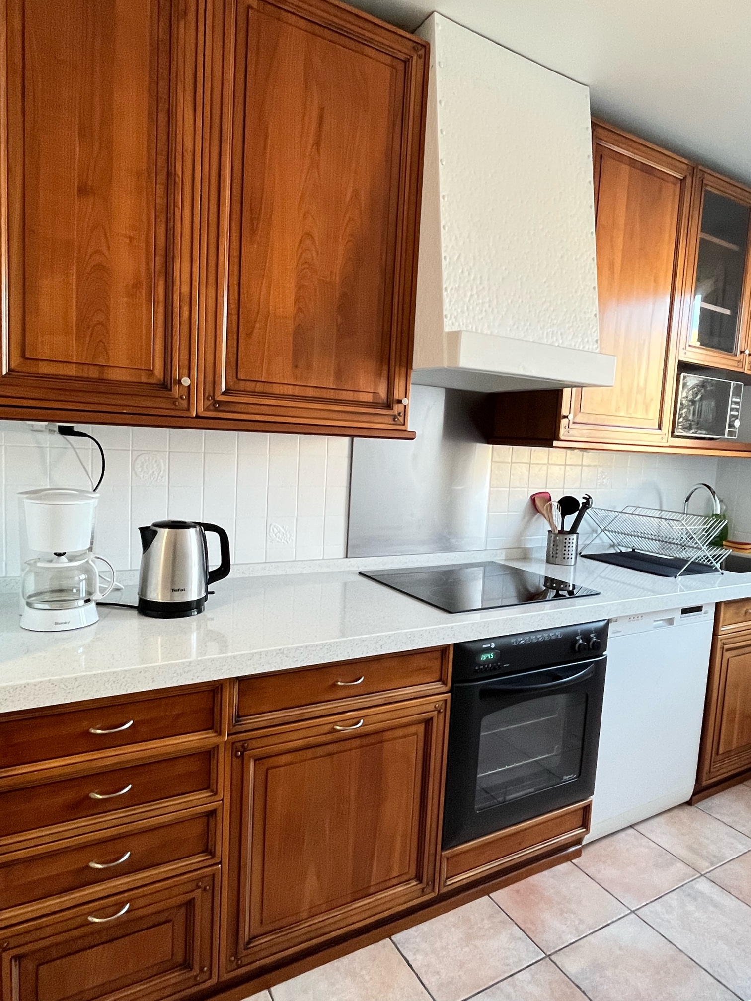 厨房里有烤箱、冰箱、洗,微波炉、抽油烟机、洗衣机、餐具以及各种小家电一应俱全。拎包入住。