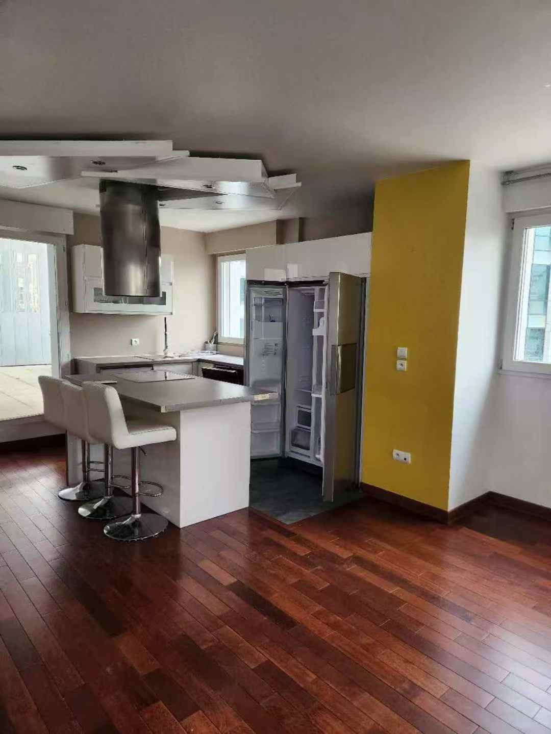 92省富人区Issy-les-Moulineaux近华为两室一厅84平带25平内嵌阳台,地下停车位。3楼有电梯,配基础家具,开放式厨房,冰箱,沙发床,衣柜。卫浴独立